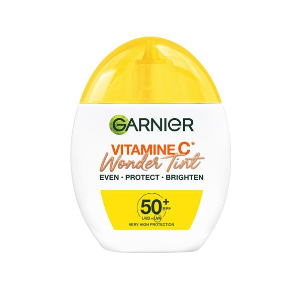 Le fluide teinté Garnier Vitamine C* Wonder Tint SPF 50+ en teinte « médium » est un soin quotidien à la texture légère qui fait des merveilles : Garnier Vitamine C* Wonder Tint SPF 50+ médium unifie instantanément le teint, protège, hydrate** et atténue les taches pigmentaires*** pour laisser la peau éclatante. De plus, il offre une couvrance légère à moyenne qui se fond parfaitement à la peau pour un fini naturel. Non gras, non collant, il convient à tous les types de peaux, y compris les peaux sensibles. Découvrez la routine complète Garnier Vitamine C* : Étape 1 : Commencez par l’Eau Micellaire Vitamine C* et/ou le Gel Nettoyant Doux Vitamine C*. Étape 2 : Le matin, utilisez le Sérum Booster d'Éclat Vitamine C+* pour une peau plus éclatante et moins de taches, et appliquez le Sérum de Nuit Éclat le soir après le nettoyage pour réduire les taches, le teint terne et les ridules. Étape 3 : Après le sérum, appliquez la Gelée Hydratante Sorbet Vitamine C* de Garnier pour une hydratation qui fond sur la peau avec une texture ultra-légère et fraîche. Étape 4 : Pour la journée, terminez votre routine avec un fluide Garnier Daily UV en version Glow ou Invisible pour protéger la peau des rayons UVA et UVB avec un SPF 50. *Vitamine Cg = un dérivé de la vitamine C, **Test consommateur sur 79 participants, 28 jours, ***Test clinique sur 55 taches pigmentaires, 55 participants.