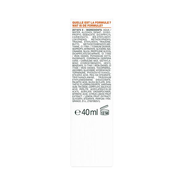 RÉDUIT LES TACHES PIGMENTAIRES pour un teint plus uniforme sur le long terme TRÈS HAUTE protection SPF 50+ FINI NATUREL & se fond parfaitement à la peau COUVRANCE LÉGÈRE, non collante et non grasse |