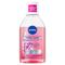 Eau Micellaire NIVEA Rose Care avec 5% sérum avec un concentré d'eau de rose naturelle & vitamine E + un complexe amino acide. Nettoie soigneusement et en douceur. Purifie et hydrate instantanément pour une peau éclatante. Enlève efficacement le maquillage waterproof, les impuretés et les filtres UV. TESTÉ SOUS CONTRÔLE DERMATOLOGIQUE & OPHTALMOLOGIQUE