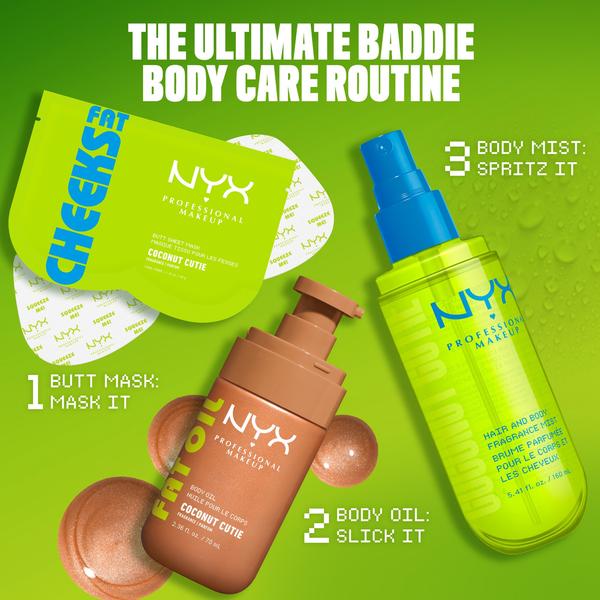 Le NYX Professional Makeup Fat Oil Coconut Cutie Hair & Body Mist est votre touche finale ultime pour un parfum tropical et irrésistible qui dure toute la journée. Ce parfum polyvalent pour cheveux et corps, avec ses arômes irrésistibles de noix de coco luxuriante et de pêche juteuse, laisse une impression inoubliable. C'est un véritable statement qui booste votre énergie "baddie".