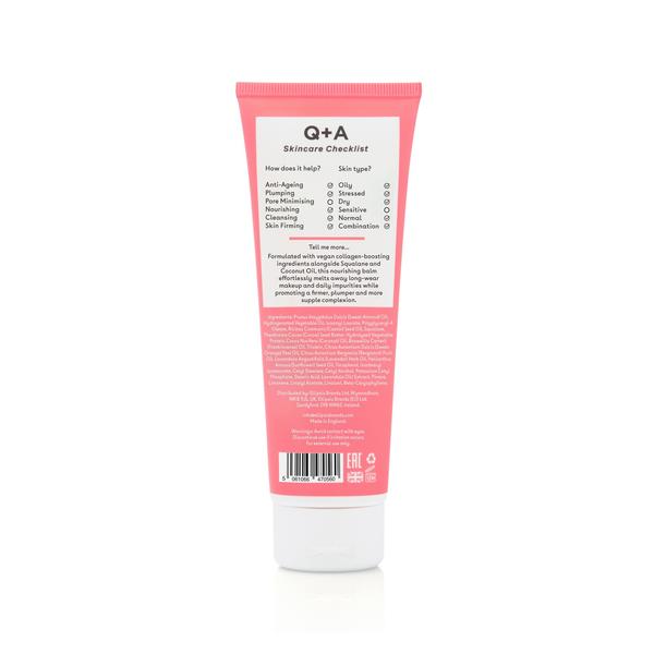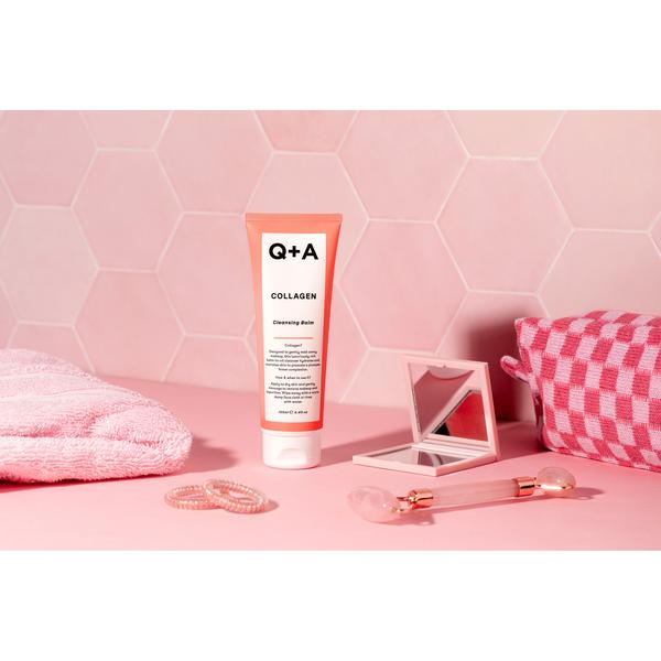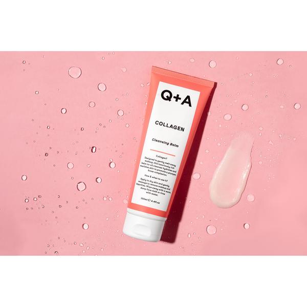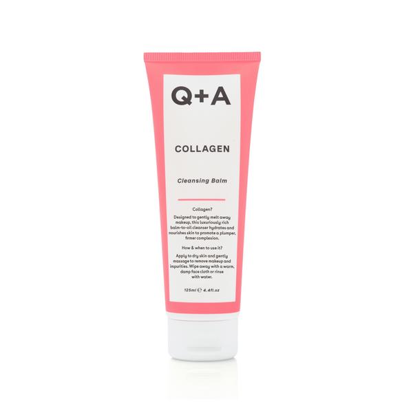 Le Collagen Cleansing Balm de Q+A fond sur la peau et élimine efficacement le maquillage, le SPF et les impuretés sans dessécher. Enrichi en collagène d’origine végétale, il laisse la peau douce, souple et hydratée après le nettoyage.