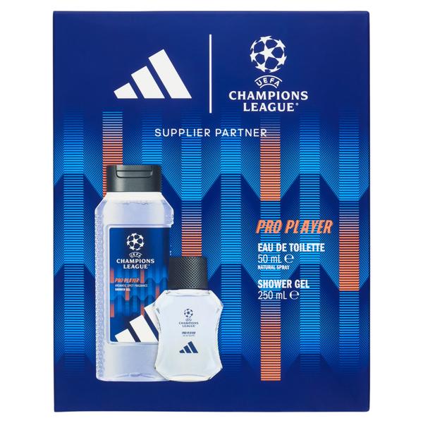Le coffret cadeau adidas UEFA Champions League Pro Player avec Eau de Toilette et Gel Douche rend hommage au joueur dont chaque geste devient une œuvre d’art. L’Eau de Toilette est un parfum frais et longue tenue, avec des huiles essentielles naturelles de poivre noir et des notes de lavande. Le Gel Douche possède une formule propre et vegan, ainsi qu’un parfum rafraîchissant aux huiles essentielles naturelles de bois de cèdre et de patchouli.
