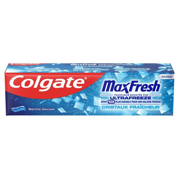 Obtenez une sensation d’haleine fraîche avec le dentifrice Colgate Max Fresh Cristaux Fraîcheur. Grâce à la fraîcheur de la technologie UltraFreeze, ce dentifrice au fluor offre une sensation de fraîcheur 10x plus durable.* Avec son goût de menthe glaciale, le dentifrice dynamise votre expérience de brossage tout en offrant une fraîcheur durable, pour que vous vous sentiez rafraîchi, revigoré et prêt à aborder la journée avec assurance. De plus, il libère un souffle instantané de fraîcheur délicieuse à chaque brossage. Réveillez la fraîcheur qui sommeille en vous avec ce dentifrice Colgate. * Par rapport à un dentifrice au fluor classique.