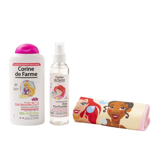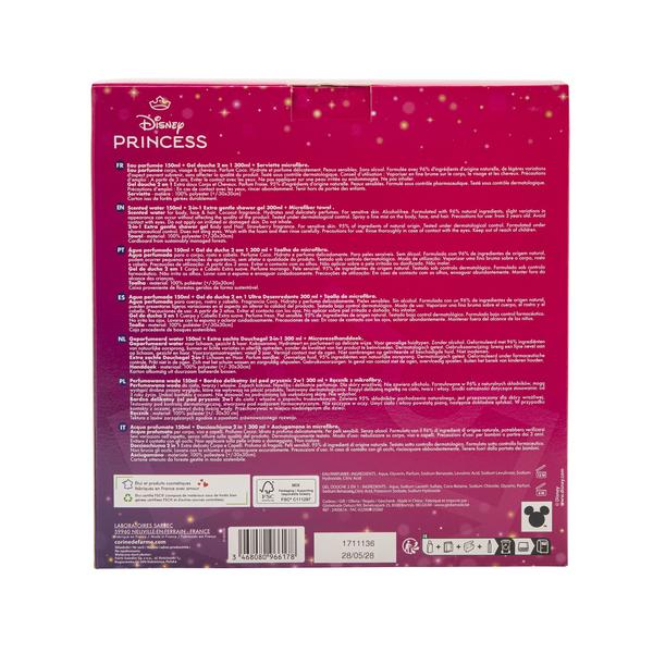 Coffret comprenant une eau de toilette princesse, un gel douche princesse et une serviette de toilette