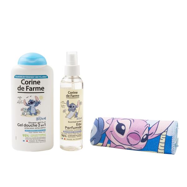 Coffret comprenant une eau parfumée Stitch, un gel douche Stitch et une serviette de toilette