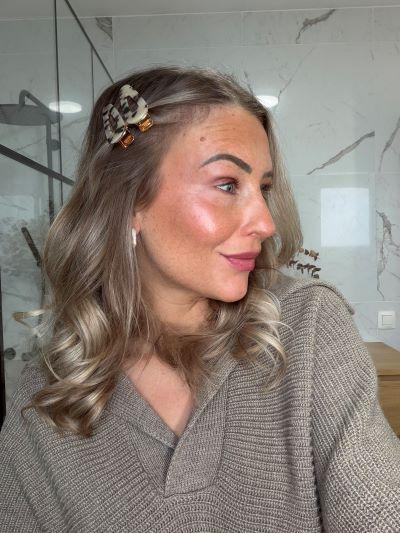 Étape 4 : une fois arrivé aux pointes, attachez l'ensemble avec les chouchous (scrunchies) fournis. Retirez la pince du sommet de la tête. Vous êtes prête pour une bonne nuit de sommeil !