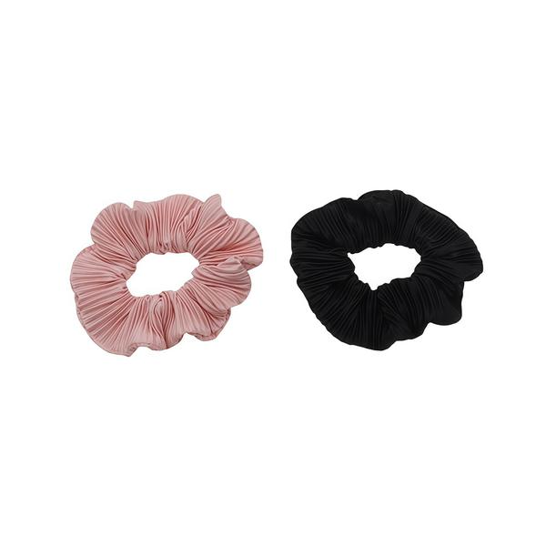 Apportez douceur et style à vos coiffures avec ce lot de 2 chouchous en satin noir et rose de 4 cm. Confortable et tendance.