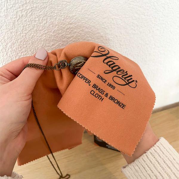 Chamoisine de polissage pour le nettoyage des bijoux en cuivre, laiton et bronze. Résultats instantanés, les objets redeviennent propres et brillants sans effort.
