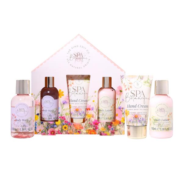Plongez dans un moment de bien-être avec le coffret bain Blissful Bathe Spa Botanique. Contient un gel douche, une lotion pour le corps et une crème pour les mains enrichis en extraits botaniques. Hydrate, adoucit et laisse la peau délicatement parfumée. Vegan et approuvé PETA.