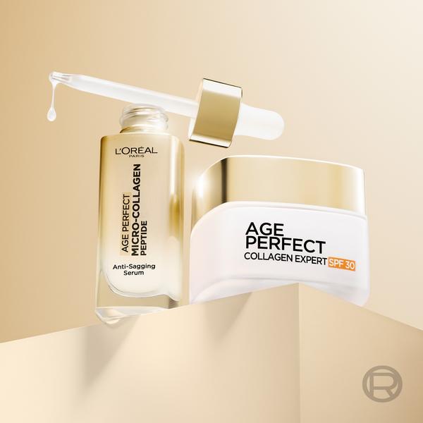 Découvrez le Sérum Anti-Relâchement Raffermissant Immédiat Age Perfect Collagen Expert de L'Oréal Paris. Spécialement conçu pour les peaux matures : après 50 ans, la peau perd jusqu’à 30 % de son collagène, ce qui entraîne un relâchement cutané. Pour aider à lutter contre ce relâchement, le collagène doit être renforcé de l'intérieur. C'est pourquoi nous avons développé un sérum qui combat le relâchement et raffermit la peau. Le sérum L'Oréal Paris Age Perfect Collagen Expert Sérum Raffermissant Anti-relâchement Immédiat est enrichi en micro-peptides de collagène et en niacinamide. Les peptides de collagène sont des composants du collagène naturellement présents dans la peau. Ce sérum contient notre plus haute concentration de micro-peptides de collagène. Ces micro-peptides de collagène ont une taille estimée à 3 nanomètres, ce qui leur permet de pénétrer facilement dans la peau. Ils aident à améliorer la fermeté et à inverser les signes de perte de collagène. La niacinamide est un ingrédient actif puissant qui aide à réduire les taches de vieillesse et à unifier le teint. Le sérum L'Oréal Paris Age Perfect Collagen Expert Sérum Raffermissant Anti-relâchement Immédiat possède une texture veloutée et légère qui pénètre rapidement sans laisser de sensation collante, tout en hydratant intensément. Des résultats prouvés sur peaux matures : Immédiatement : La peau est plus ferme et plus tonique. Elle reste hydratée pendant 24 heures et semble nourrie. Après 2 semaines : La peau paraît plus rebondie, plus éclatante et plus saine. Le teint est plus uniforme. Les rides sont visiblement réduites. Après 4 semaines : Le relâchement cutané est corrigé. Les taches de vieillesse sont visiblement réduites.