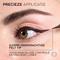Agitez légèrement l'eyeliner. Tracez un trait fin le long de la ligne des cils avec la pointe feutre de 0,01 mm. Pour une virgule : suivez la direction naturelle de la ligne des cils inférieurs et remontez.