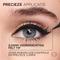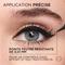 Agitez légèrement l'eyeliner. Tracez un trait fin le long de la ligne des cils avec la pointe feutre de 0,01 mm. Pour une virgule : suivez la direction naturelle de la ligne des cils inférieurs et remontez.