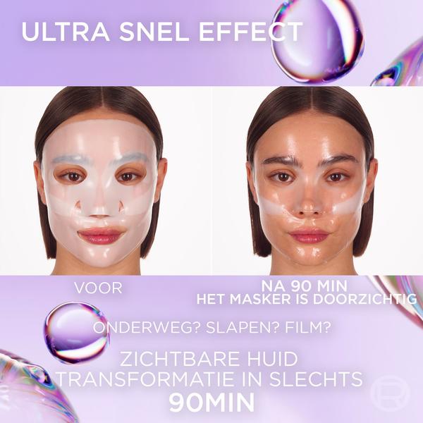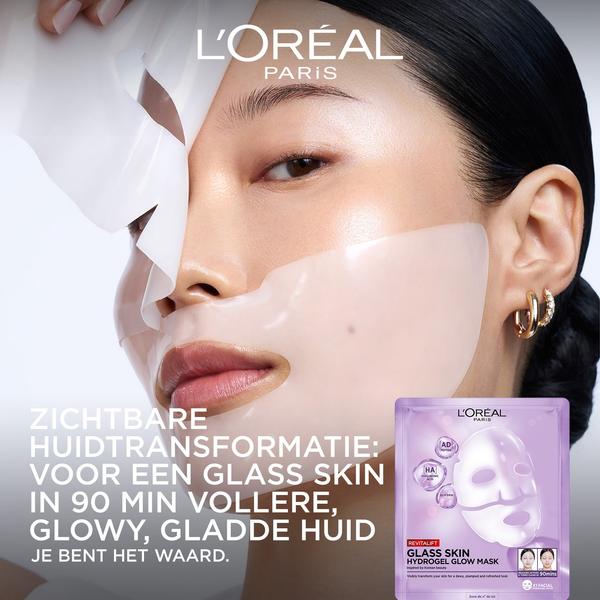 Le masque en tissu hydrogel Glass Skin L'Oréal Paris Revitalift Filler est un masque éclat adapté à tous les types de peau, même les peaux sensibles. Inspiré des soins coréens, ce masque devient invisible sur la peau après 90 minutes. Enrichi en extrait de Centella Asiatica, en panthénol apaisant et en actifs de soin tels que l’acide hyaluronique, l’adénosine et la glycérine. Obtenez une peau lumineuse, repulpée et rafraîchie en seulement 90 minutes !