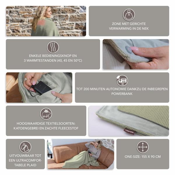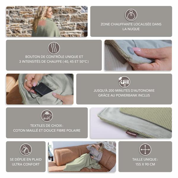 Absolument. Le Heat Wrap se déplie pour devenir un plaid confortable. Vous pouvez ainsi l’utiliser aussi bien assis sur le canapé que dehors lors d’une pause ou même au bureau.