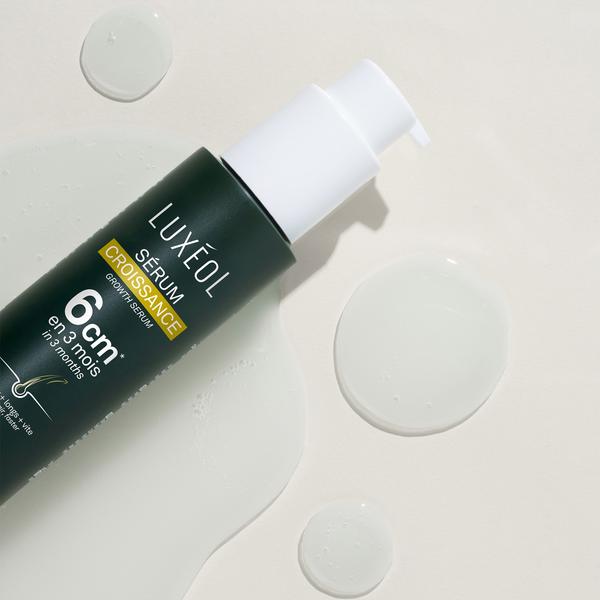 * Étude clinique contre placebo, 87 femmes, 6,01 cm de longueur après 3 mois d’utilisation du protocole Croissance Luxéol (shampooing + conditionneur sans rinçage + sérum) contre 3,75 cm pour le placebo.