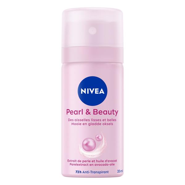 Le déodorant en spray Pearl & Beauty mini de NIVEA vous protège 48h contre la transpiration et les odeurs et laisse la peau de vos aisselles lisse et belle