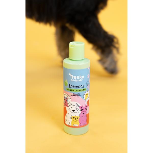 Geef je huisdier de verzorging die hij verdient met onze Tresky & Friends shampoo! Speciaal ontwikkeld voor de huid en vacht van honden, zorgt hij voor een zachte en verfrissende finish en helpt hij de huid gezond en rustig te houden. Deze shampoo laat je hond schoon, lekker ruikend en zacht aanvoelen. Verwen je viervoeter met een verkwikkend bad!