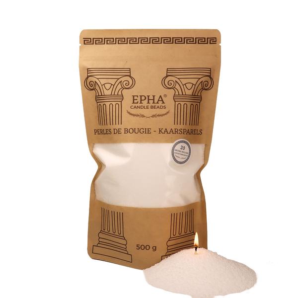 In elk pakket EPHA® vind je 500 gram kaarsenparels. Elk EPHA® buis bevat 20 lonten, die samen meer dan 240 uur brandtijd bieden.