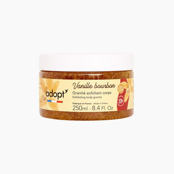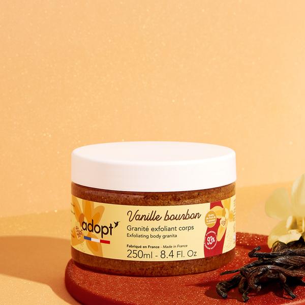 Laat uw huid stralen met Vanille Bourbon, een exfoliërende granité met een heerlijke geur. Het geheim? Een lichte textuur die zachtjes reinigt en dode huidcellen verwijdert dankzij een formule die voor 93% uit natuurlijke ingrediënten bestaat. Geniet na elke toepassing van een gevoel van welzijn. Uw huid is klaar voor de zomer.