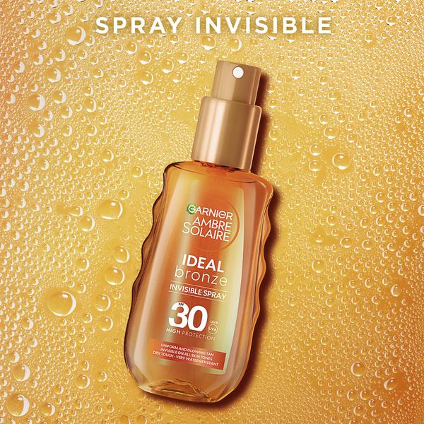 Verzending binnen 24uGarnier Ambre Solaire Ideal Bronze Invisible Spray met SPF30 beschermt tegen UVA- en UVB-stralen. De transparante formule is zeer waterresistent en geeft een stralende teint met een natuurlijk effect. Met Ideal Bronze producten van Garnier bescherm je de huid terwijl je de huid een stralend teint geeft voor een zongebruind effect. Overmatige blootstelling aan de zon is gevaarlijk. Biedt niet 100% bescherming. Vlak voor blootstelling aanbrengen. Regelmatig royaal opnieuw aanbrengen, vooral na het zwemmen, transpireren of afdrogen.
