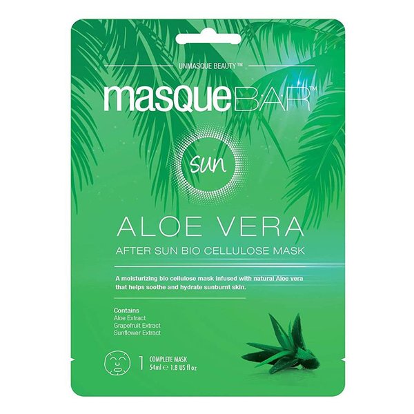 Help je huid zich te herstellen na blootstelling aan de zon met het Aloe Vera After Sun Bio Cellulose sheet mask van Masque Bar! De ultrahydraterende en licht verkoelende samenstelling is rijk aan natuurlijke aloë vera om zonnebrand te verzachten en het vochtgehalte van je huid op peil te houden. Het materiaal, bio cellulose, sluit het serum in de huid voor een nog doeltreffendere werking.
