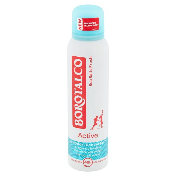 Hoe meer je zweet, hoe beter hij werkt. De Active Sea Salts Fresh deodorant van Borotalco bevat de exclusieve Odor-Converter technologie, micro-capsules die knappen bij beweging en transpiratie en het frisse, aquatische parfum versterken. Deze unieke, alcoholvrije formule blijft 48 uur lang actief voor langdurige bescherming tegen onfrisse geurtjes.