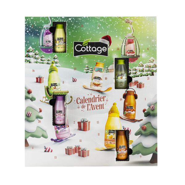 Achter elk van de 24 deurtjes schuilt een miniproduct van het merk Cottage, Verrassingen met heerlijke geuren zoals karamel, vanille, kokos en framboos.