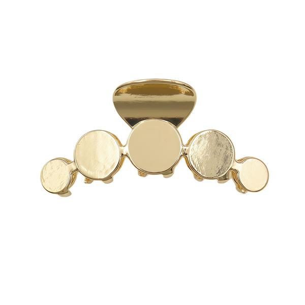 Deze kleine decoratieve clip met vijf gouden cirkels geeft glans en originaliteit aan je kapsel. Ideaal om een halve knot te verfraaien of een elegante touch aan je paardenstaart toe te voegen.