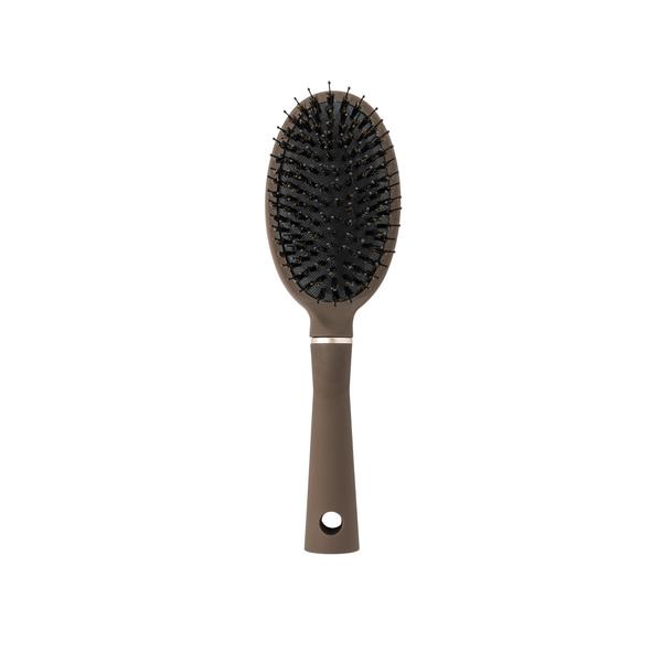 Deze haarborstel combineert flexibele nylonpinnen met natuurlijke everzwijnenharen voor een doeltreffende en haarvriendelijke borstelbeurt. Ze ontwart zachtjes, vermindert statische elektriciteit en verdeelt de natuurlijke talg over de hele haarlengte, waardoor het haar glanzender en zachter wordt. Geschikt voor dagelijks gebruik en voor alle haartypes, ook fijn of gevoelig haar.