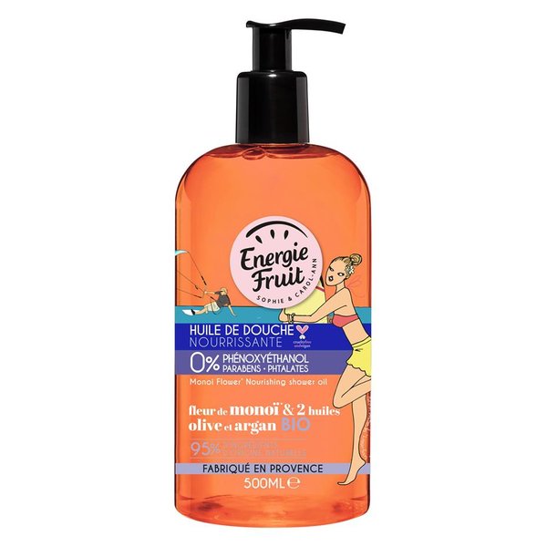 Monoi douche olie-2 olijf-en Argan organische oliën van Énergie Fruits is een innovatieve douche- en badolie die hydratatie en sensaties combineert. Een zacht moment in de douche waar u kunt baden dankzij een zijdeachtige olietextuur met zomergeur. Zonder zeep, zonder methyl en neutrale ph, zijn de oliën van de fruitenergiedouche geschikt voor gevoelige huid. Een omhullende strek, heerlijk geparfumeerd voor een zachte en voedende huid gedurende de dag.