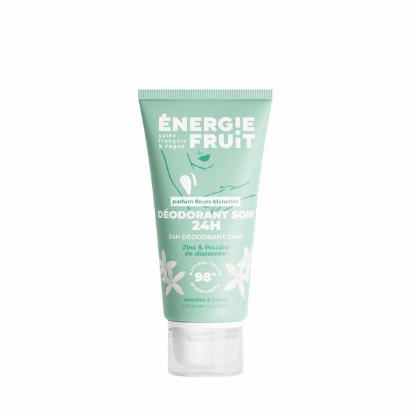 De verzorgende 24u deodorant met witte bloemen parfum combineert doeltreffendheid met zintuiglijk plezier. De technologie combineert diatomeeënaarde, bekend om het absorberen van overtollig vocht, met zink, dat bijdraagt aan het neutraliseren van geurtjes, in een lichte crèmetextuur die snel droogt. Dankzij de ergonomische applicator is het eenvoudig aan te brengen onder de oksels en volgt het de vorm van de huid voor optimaal comfort. De formule met 98% ingrediënten van natuurlijke oorsprong biedt een deodorant-doeltreffendheid tot wel 24 uur lang, zonder plakkerig effect. Deze in Frankrijk ontwikkelde en geproduceerde deodorant combineert prestaties en zintuiglijkheid met een delicaat parfum van witte bloemen. Zelftevredenheidstest uitgevoerd gedurende 4 weken - 20 vrijwilligers .