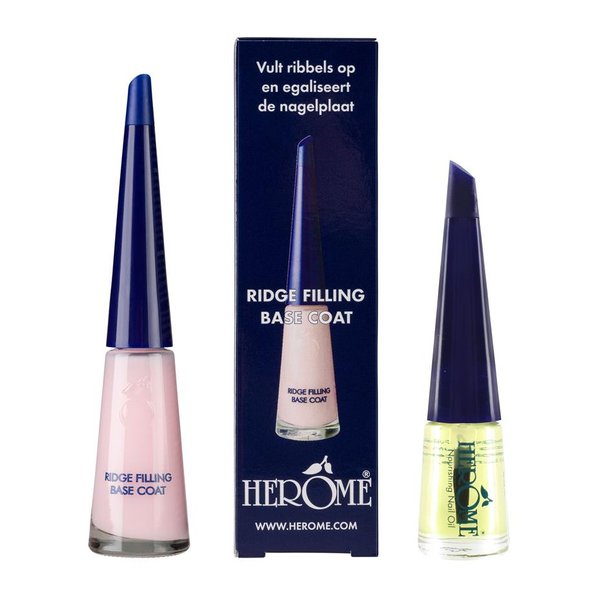 Herôme basislak egaliseert geribbelde nagels, vult oneffenheden op en beschermt de nagel tegen het intrekken van kleurstoffen van de nagellak.
