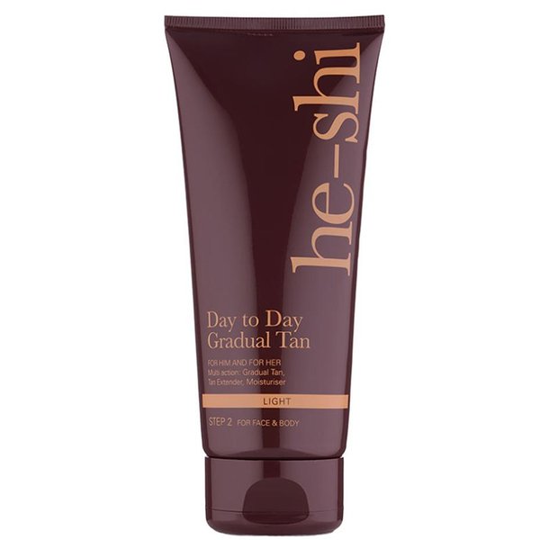 De Day To Day Gradual Tan van He-Shi is een makkelijke, veilige manier om van een gebronsd huidje te genieten. De 3 in 1-formule zorgt ervoor dat je een bestaand tintje langer behoudt, bouwt geleidelijk de kleur op én houdt je huid zacht en gehydrateerd. De zachte crème bevat Vitamine E, aloë vera, provitamine B5 en het Youth Revive Opti Tan voor een verzorgend en verjongend effect. Geschikt voor lichaam en gezicht.