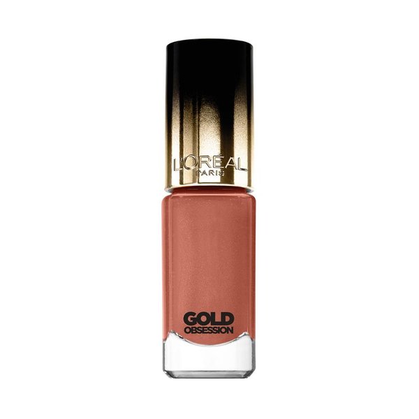 Color Riche Le Vernis Gold Obsession van L'Oréal is een nagellak met gelformule en een geïntegreerde topcoat die de glans van een frisse manicure lang behoudt. Het gepatenteerde borsteltje laat je bovendien toe erg precies te lakken om foutjes te voorkomen.