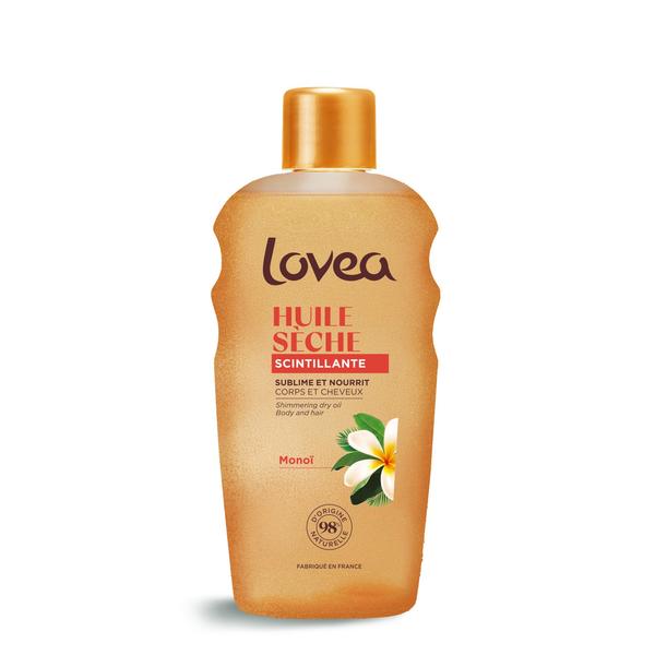 Laat je zomeravonden stralen met Lovea Monoï de Tahiti Dry Shimmering Oil. Verrijkt met Monoï de Tahiti appellation d'origine, bekend om zijn hydraterende eigenschappen, is deze voedende veganistische olie gemaakt met 100% natuurlijke parelmoer. Ze verfraait, voedt en verlicht je huid en haar, dag en nacht! Het laat een zonovergoten Monoï-geur achter op je huid en haar! Gemaakt in Frankrijk, bevat 98% natuurlijke ingrediënten en is dermatologisch getest. Het resultaat? Een zachte, stralende huid. Let op: dit product beschermt niet tegen zonnestralen.