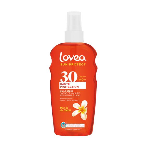 de beschermende droge olie waar je deze zomer dol op zult zijn: bescherming en bruining in één! Lovea Nourishing High Sun Protection Dry Oil SPF 30 beschermt je huid effectief tegen UVA/UVB-stralen en geeft je tegelijkertijd een langdurige, gouden, stralende bruine teint. Deze lichaamsolie met zoete, zonovergoten geur voedt, beschermt en verzacht de huid. De veganistische formule is gemaakt in Frankrijk en dermatologisch getest. Beschermend en voedend, verrijkt met Monoï de Tahiti-olie van verantwoorde herkomst. De nieuwe generatie zonnefilters die voor deze zonnebeschermingsolie zijn gekozen, zijn zacht voor de huid. Resultaat na het aanbrengen? Je huid is beschermd, gevoed, satijnzacht en heerlijk geparfumeerd.