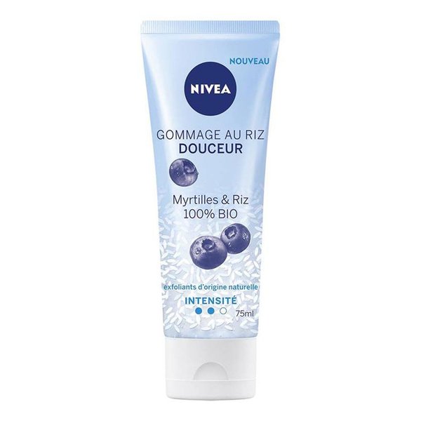 Op basis van bio blauwe bes, bio rijst en exfolianten van natuurlijke oorsprong, de Nivea Egaliserende Rijst Scrub exfolieert grondig en verwijdert dode huidcellen, zonder de huid te irriteren. Voor een verfijnde, egale en frisse huid.