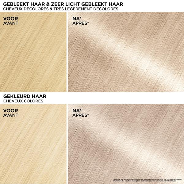 Jouw kleur, maar dan beter! Garnier Olia Gloss Getint Haarmasker is een revolutionair multifunctioneel masker dat gele tinten neutraliseert en jouw haar verzorgt, in slechts 10 minuten. De formule, verrijkt met voedende bloemoliën, garandeert een stralende glans die tot 72 uur* aanhoudt. Garnier Olia Gloss Getint Haarmasker is eenvoudig in gebruik: breng aan op schoon, nat haar, laat 10 minuten inwerken en spoel uit. Het resultaat? Een opgefriste, heldere blonde kleur die tot 4 wasbeurten*** mooi blijft en tot 1 jaar haarschade** wordt hersteld. Geef je haar een directe transformatie met het Garnier Olia Gloss Getint Haarmasker. Dit innovatieve masker is dé oplossing voor ongewenste gele en oranje ondertonen in blond of geblondeerd haar, en is geschikt voor alle haartexturen. De geavanceerde formule neutraliseert effectief de hinderlijke gele gloed, waardoor je haarkleur weer koel en stralend wordt. Het zorgt voor een sensationele, langdurige glans die tot wel 72 uur** aanhoudt, en herstelt bovendien 1 jaar aan haarschade* in slechts één toepassing. Ervaar de kracht van een neutraliserend masker dat je haarkleur niet alleen corrigeert, maar ook intens voedt en laat stralen! *Consumententest. **Instrumentele test / oppervlakteschade. ***Instrumentele test.