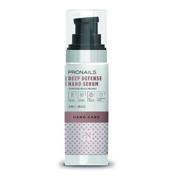 Je handen vertellen je verhaal en verraden vaak ook je leeftijd! ProNails ontwikkelde daarom het Deep Defense Hand Serum, een zeer lichte verzorging dat snel tot diep in de huid dringt. De formule werd verrijkt met hyaluronzuur, een intensief hydraterend bestanddeel dat rimpels en fijne lijntjes van binnenuit opvult. Een cocktail van actieve ingrediënten stimuleert de productie van collageen en elastine, twee eiwitten die je huid soepel en stevig houden.