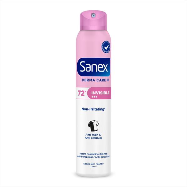 Sanex Derma Care+ Invisible 72h Anti-transpirant Spray geeft je frisheid en zelfvertrouwen, zodat je kunt genieten van wat de dag je brengt. De formule is niet-irriterend* en biedt effectieve, langdurige bescherming tegen transpiratie en onaangename geurtjes. De spray is bovendien zo ontworpen dat hij geen strepen achterlaat op kleding, handdoeken en lakens, zodat je vol vertrouwen van je dag kunt genieten. Deze door dermatologen aanbevolen anti-transpirant voor de gevoelige huid is speciaal samengesteld voor een direct gevoed gevoel, is alcoholvrij* en houdt de huid fris en droog, terwijl hij effectieve, milde bescherming biedt tegen ongewenste geurtjes. Bovendien is deze alcoholvrije anti-transpirant spray dermatologisch getest en helpt hij je okselhuid te beschermen tegen irritatie dankzij de milde formule. Ga drukke dagen met gemak aan met deze langdurige anti-transpirant die geen strepen of resten achterlaat, zodat je huid het respect krijgt dat ze verdient. ¹In hypermarkten en supermarkten, IPSOS-studie uit 2024, 110 dermatologen in Frankrijk, 45 in België. *Bevat geen ethylalcohol.