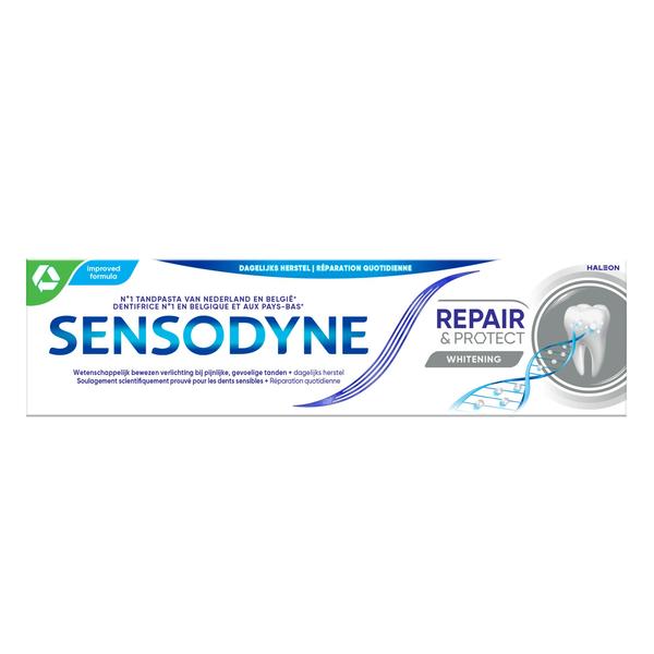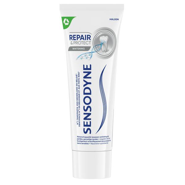 Sensodyne Repair & Protect Whitening tandpasta herstelt gevoelige tanden* & verlicht pijnlijke gevoeligheid**. Sensodyne Repair & Protect is een dagelijkse fluoride tandpasta en heeft een recyclable tube, dop & kartonnen doosje. De unieke Novamin formule is klinisch bewezen, ervaar het zelf. Sensodyne: N˚1 tandpasta van Nederland & België voor gevoelige tanden***