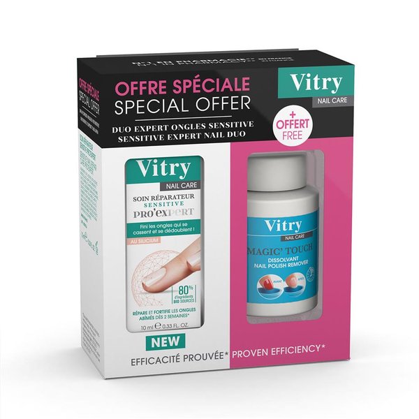 Met 80% bio-ingrediënten is de herstellende behandeling Sensitive Pro Expert van Vitry een geconcentreerde behandeling die zachte, dunne, broze en gespleten nagels herstelt, versterkt en beschermt. 5-in-1: verharder / anti-streep / beschermer / hersteller / versterking.